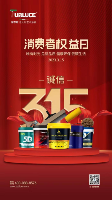 不知不覺,315來臨了。3月15日是“國際消費(fèi)者權(quán)益日”,由國際消費(fèi)者聯(lián)盟組織于1983年確立。國際消費(fèi)者權(quán)益日目的在于擴(kuò)大消費(fèi)者權(quán)益保護(hù)的宣傳,更好地保護(hù)消費(fèi)者權(quán)益,在這個特殊的日子里,TUBLUCE藝術(shù)涂料奏響生態(tài)家裝壁材涂料最強(qiáng)音——向劣質(zhì)藝術(shù)涂料產(chǎn)品“say no”!堅持以客戶為中心,堅持以品質(zhì)和信用為基才能贏得消費(fèi)者的青睞。