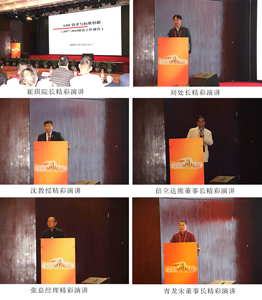 開(kāi)幕式上,崔琪院長(zhǎng)首先作了題為《GRC技術(shù)與標(biāo)準(zhǔn)創(chuàng)新(2017-2018協(xié)會(huì)工作報(bào)告)》的主題工作報(bào)告,從創(chuàng)新與發(fā)展、國(guó)內(nèi)外交流活動(dòng)、日常工作、設(shè)想與探討四個(gè)維度進(jìn)行了演講,從行業(yè)標(biāo)準(zhǔn)的制定,新技術(shù)、新材料的創(chuàng)新利用,到行業(yè)GRC經(jīng)典建筑的介紹,比較詳細(xì)地介紹了grc協(xié)會(huì)近年來(lái)的工作,成就有目共睹。最后崔院長(zhǎng)還根據(jù)多年的實(shí)踐研究,對(duì)grc行業(yè)裝配式建筑、綠色建材、資源與環(huán)保、行業(yè)創(chuàng)新等進(jìn)行了設(shè)想與探討。