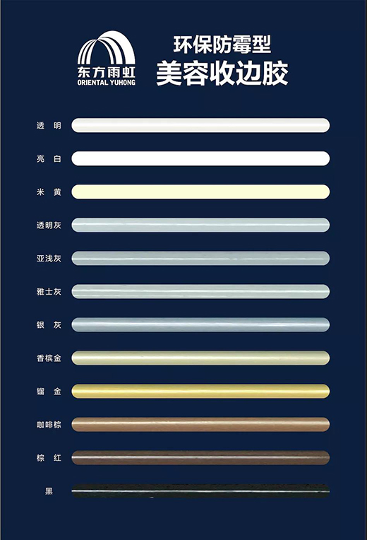 美容收邊膠主要有12種顏色,包含了市面上收邊膠的主流配色,能夠適配不同裝修風(fēng)格。