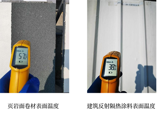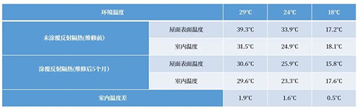 實驗結果表明:此款建筑反射隔熱涂料的太陽光反射比高達86%*,有效降低防水層表面溫度20℃*左右,減緩老化速度,延長防水材料使用壽命3-5年*,降低維修成本,減少建筑垃圾。