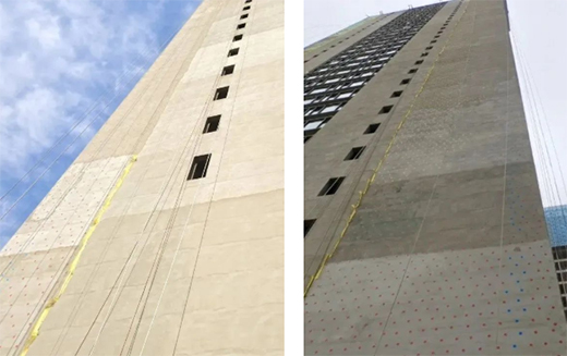 此外,作為一款將保溫層置于建筑物外墻外側(cè),與基層墻體采用粘錨方式固定的系統(tǒng),臥牛山薄抹灰外墻外保溫系統(tǒng)是由保溫芯材、膠粘劑、抹面膠漿、玻纖網(wǎng)格布及錨固件、飾面層組成,必要時(shí)可采用護(hù)角、托架等配件以及防火構(gòu)造措施。系統(tǒng)具有錨、粘相結(jié)合的施工特點(diǎn),再輔之以專用抹面砂漿壓入耐堿玻纖網(wǎng)格布,進(jìn)行鋪設(shè),能夠有效增強(qiáng)抗風(fēng)壓和抗沖擊性,該產(chǎn)品是一款適用于超低能耗的建材。