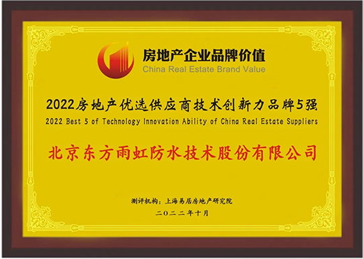 - 東方雨虹上榜“2022房地產(chǎn)優(yōu)選供應(yīng)商技術(shù)創(chuàng)