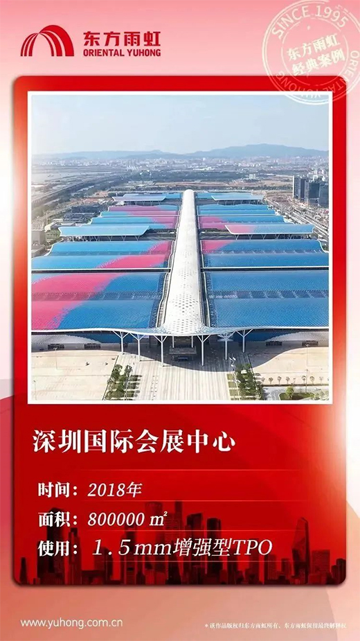 自2009年正式投產(chǎn)TPO生產(chǎn)線至今,東方雨虹已深耕TPO柔性屋面系統(tǒng)十余年,并逐步形成較為完善、成熟的屋面系統(tǒng)解決方案,先后為機場、體育場館、博物館、展覽館、藝術(shù)中心等眾多大型工程項目提供TPO屋面系統(tǒng)施工服務(wù)和技術(shù)支持,積累了豐富的屋面工程實踐經(jīng)驗和成功案例。