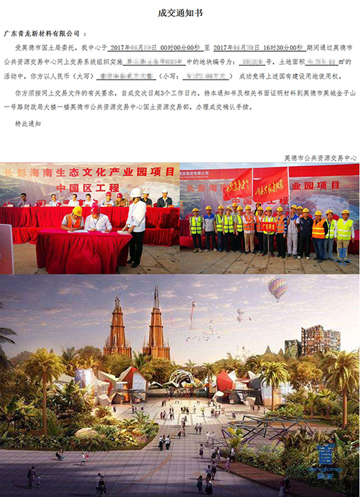 清遠(yuǎn)基地(廣東青龍新材料公司)順利完成前置審批,破土動(dòng)工在即。