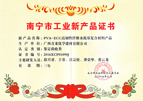 青龍集團公司薛博士指出,聚乙烯醇纖維具有很好的力學性能,耐酸堿腐蝕,纖維具有良好的分散性,纖維與水泥的親和性好,粘合強度高,對人體和環(huán)境無毒無害,因此將其應用到水泥基材料能充分改善混凝土的性能。聚乙烯醇纖維增強水泥基材料作為一種具有高韌性的延性混凝土,具有很大的吸收能量的能力,因此可以顯著改善混凝土結構的抗震性能,可用于抗震結構、抗沖擊結構、結構裂縫控制和耐損傷工程結構?;诖耍帻埣瘓F公司博士研發(fā)團隊通過利用聚乙烯醇纖維的特點和優(yōu)勢,研究了聚乙烯醇纖維增強水泥基材料的性能和在外墻板、戶外家具、輕質藝術構件、三維效果地坪及仿大理石面板方面應用,并取得了較大的技術突破。該項目產品具有綠色環(huán)保、防水、強度高、耐候性好、防火性能好和裝飾效果獨特等優(yōu)勢,被南寧市工信委推薦為工業(yè)新產品。