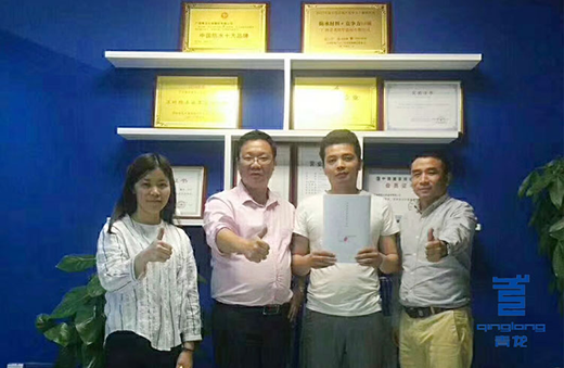 2018年4月11日下午,來自廣東韶關(guān)的黃老板經(jīng)過對青龍中山公司的實地考察后,當(dāng)機立斷正式簽約加入到青龍家裝防水陣營,從而將機會緊緊抓住在自己手中。
