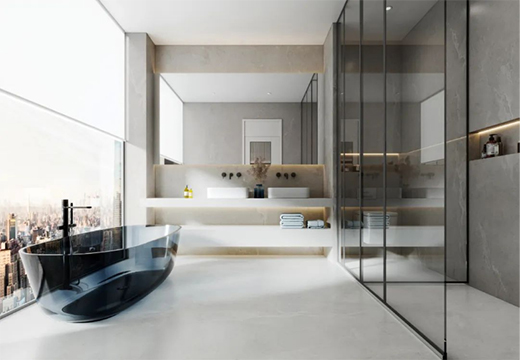 從2021開始,箭牌復(fù)合輕紋磚就專門推出天空之境系列巖板,和箭牌衛(wèi)浴一起打造全巖+全衛(wèi)一體化空間。
