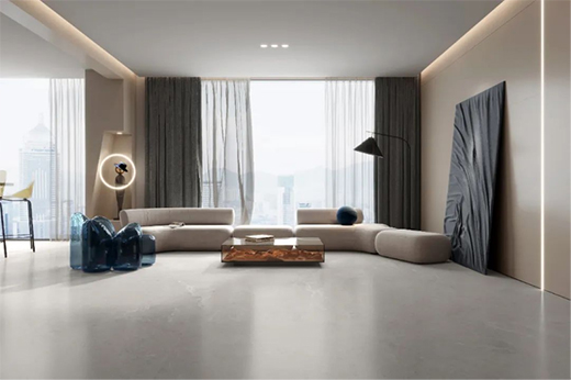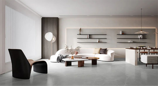 另外,復(fù)合輕紋磚還是3%-15%的低飽和度色彩瓷磚,它解決了家具軟裝與瓷磚色彩的沖突問題。