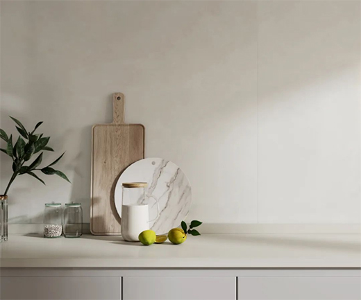 另外,侘寂風(fēng)也是當(dāng)下廣受追捧的風(fēng)尚,所以今年的網(wǎng)紅款推的是輕紋原素巖板系列,主要設(shè)計元素是微水泥、微顆粒水磨石。這種輕紋水泥的圖案非常適合營造出安靜質(zhì)樸的家居氛圍感。