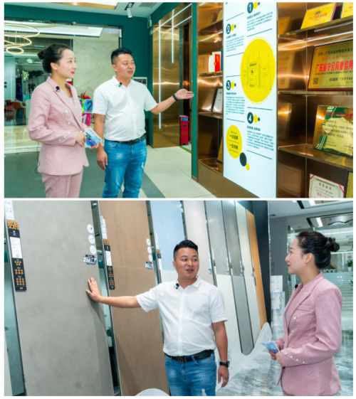 在直播中,主持人和集團(tuán)設(shè)計(jì)部設(shè)計(jì)總監(jiān)謝春新帶領(lǐng)屏幕前的觀眾一起“游覽”展廳,對大板區(qū)域、巖板區(qū)域、木紋磚區(qū)域幾大類產(chǎn)品進(jìn)行了詳細(xì)的介紹,不少云上觀眾對產(chǎn)品的性能表達(dá)了支持與肯定。