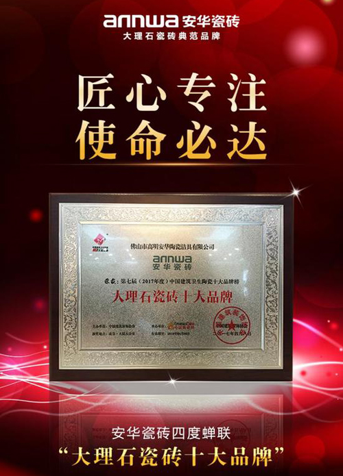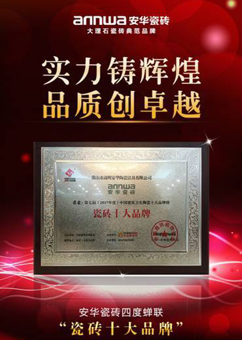 安華瓷磚榮獲“大理石瓷磚十大品牌”