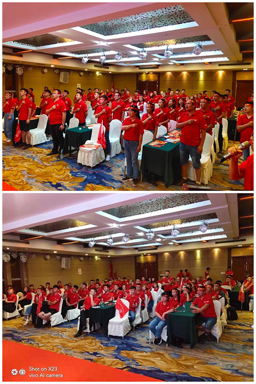 當(dāng)天下午,全體特訓(xùn)人員從各個(gè)戰(zhàn)區(qū)返回宿遷江山大酒店,召開(kāi)此次特訓(xùn)及導(dǎo)購(gòu)技能實(shí)戰(zhàn)的總結(jié)會(huì)。據(jù)了解,此次特訓(xùn)有88位學(xué)員完成了各項(xiàng)嚴(yán)格的特訓(xùn)內(nèi)容,順利結(jié)業(yè),商學(xué)院副院長(zhǎng)林小龍親自給學(xué)員頒發(fā)放結(jié)業(yè)證書(shū)。同時(shí),林院長(zhǎng)還組織全國(guó)各地的經(jīng)銷(xiāo)商開(kāi)展視頻會(huì)議,現(xiàn)場(chǎng)啟動(dòng)7月全國(guó)聯(lián)動(dòng)活動(dòng)。