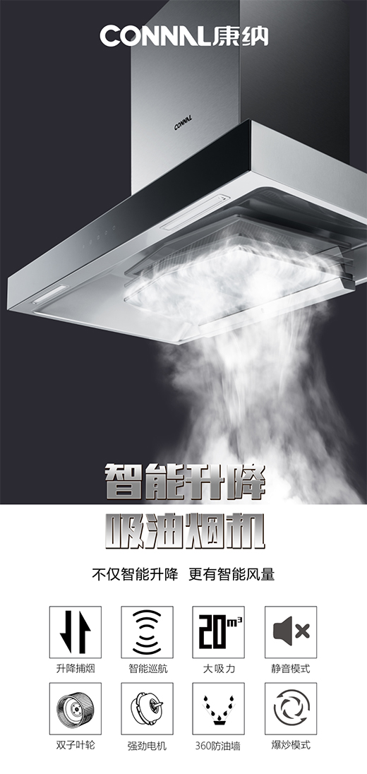 康納始終以專(zhuān)業(yè)的態(tài)度和工匠精神研磨每一款產(chǎn)品。2016年,推出行業(yè)首創(chuàng)智能升降油煙機(jī),引領(lǐng)歐式油煙機(jī)的革命性設(shè)計(jì),具有劃時(shí)代里程碑意義。