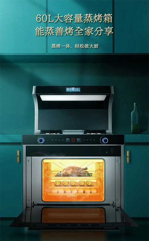 60L超大容量 一次能蒸多道菜康納大吸力集成灶ET06V擁有60L超大蒸烤箱容量,一次能蒸多道菜,均衡飲食滿足人體營養(yǎng)所需,在家也能輕松吃大餐!