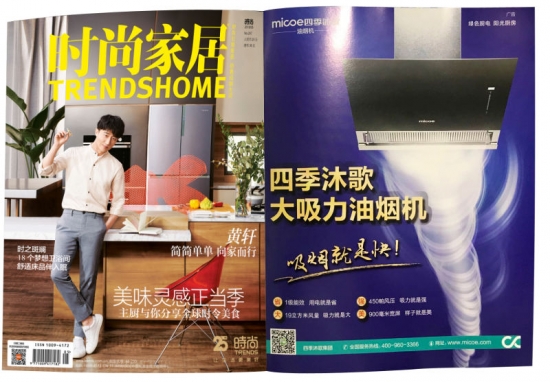 2018年5月,隨著新一期《時尚家居》雜志的出版面世,廚電專家四季沐歌的已經家喻戶曉的“四季沐歌大吸力油煙機吸煙就是快”的平面廣告正式登錄這本全球家居行業(yè)的領導刊物。