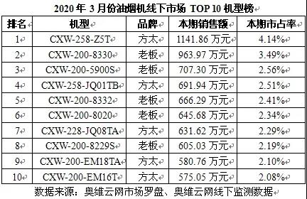 3月份TOP10產(chǎn)品:方太老板平分秋色