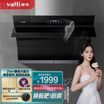 華帝(VATTI)抽油煙機(jī) 側(cè)吸式 家用靜音吸油煙機(jī) 21立方大吸力 智能揮手智控 高頻自動清洗 以舊換新 i11135