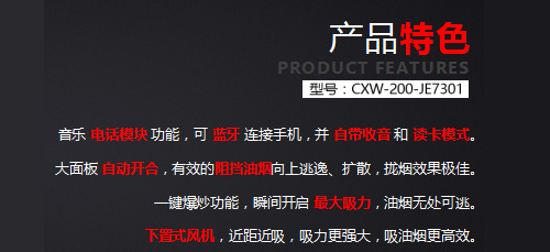 紅日CXW—200—JE7301新型抽油煙機新推出的音樂電話板塊功能,可以通過藍牙與消費者手機相連接實現(xiàn)讀卡和收音模式功能,讓消費者輕松實現(xiàn)烹飪美食和接聽電話兩不誤。與此同時紅日大面板吸油煙機的自動開合功能能夠有效的阻擊向上逃逸擴散的油煙 ,使油煙吸收和聚攏的效果達到最佳。
