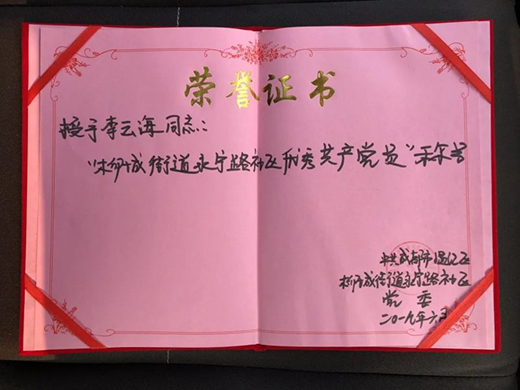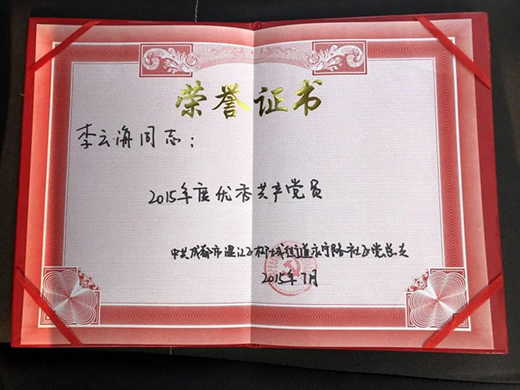 李師是一名共產(chǎn)黨員,他時刻以一名優(yōu)秀共產(chǎn)黨員的標準當作自己的折射鏡,樹立自身的人格魅力。在千川擔任行政司機的6年里,沒有過一次遲到,也沒有發(fā)生過一次安全事故。他細心、周到、樂觀的處世態(tài)度和精神感染著身邊的每一個人。