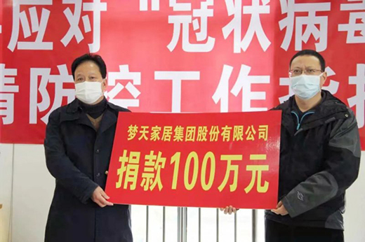 1月29日,在集團(tuán)董事長(zhǎng)余靜淵先生的帶領(lǐng)下,夢(mèng)天家居集團(tuán)股份有限公司通過(guò)慶元縣慈善總會(huì)捐出首批款項(xiàng)人民幣100萬(wàn)元。該筆捐款將用于支援肺炎疫情防控工作,采購(gòu)短缺醫(yī)療設(shè)備及物資,以及對(duì)一線醫(yī)護(hù)人員的支援和幫助,為更好打贏抗擊新型冠狀病毒戰(zhàn)役做支援。