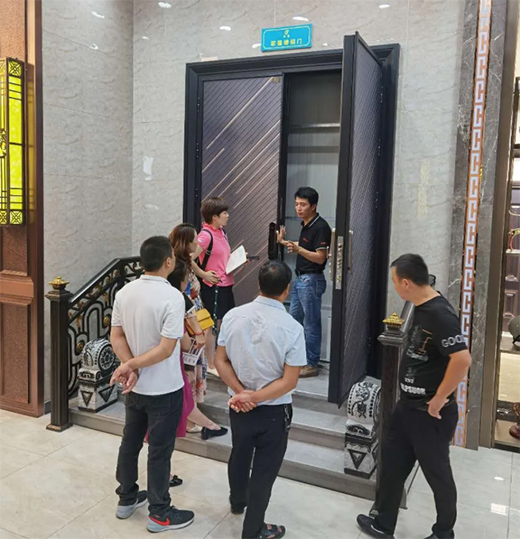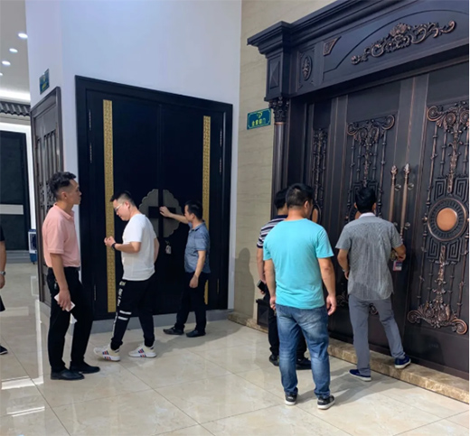 展會將持續(xù)三天,25號參觀、咨詢、、洽談的人士絡繹不絕,工廠現(xiàn)場人來人往,熱火朝天!展會期間,軍強員工向每一位消費者、經(jīng)銷商耐心講解,進行操作演示,讓每個人都能與軍強產(chǎn)品近距離接觸,親自感受軍強鑄鋁門 庭院門的的不凡實力和科技帶來的魅力。