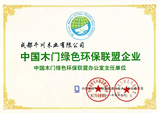 千川木門作為綠色環(huán)保理念的堅定踐行者,是首批加盟中國木門綠色環(huán)保聯(lián)盟企業(yè)成員單位,2011年被授予“中國木門綠色環(huán)保聯(lián)盟辦公室主任單位”稱號,為推行木門行業(yè)綠色產(chǎn)業(yè)化起到積極的作用。