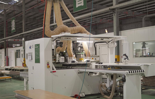 值得一提的是,油漆車間的意大利UV輥涂生產(chǎn)線,它把原本的傳統(tǒng)人工噴涂轉(zhuǎn)化為現(xiàn)代智能化量產(chǎn)操作,相比以前,可縮短油漆加工時(shí)間20%,有效節(jié)省了材料和人工成本。