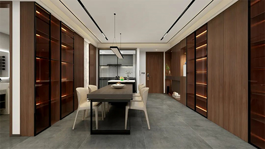 【極窄推拉門16系列】與室內(nèi)門平行分割空間,不僅有效隔絕廚房油煙外延,也為餐廳帶來(lái)明亮的采光。沐浴朝陽(yáng)與晚霞,與家人共享一日三餐的幸福。