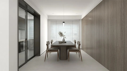 選用【極窄推拉門1606系列】打破密閉空間帶來(lái)的閉塞之感,至尊雅致的黑色為環(huán)境塑造沉穩(wěn)基調(diào),安坐其中闊視生活,帶來(lái)不凡心境。原木色系整墻與餐桌搭配,協(xié)調(diào)整個(gè)家居的侘寂風(fēng)格,讓你目光所及,以簡(jiǎn)見大。