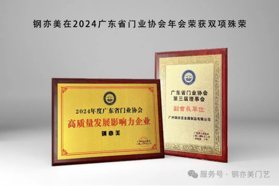 鋼亦美在2024廣東省門(mén)業(yè)協(xié)會(huì)年會(huì)榮獲雙項(xiàng)殊榮