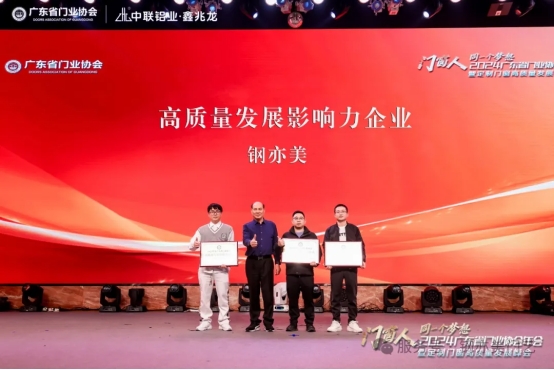 2024年12月30日,在廣東省門(mén)業(yè)協(xié)會(huì)主辦的“門(mén)窗人·同一個(gè)夢(mèng)想——2024廣東省門(mén)業(yè)協(xié)會(huì)年會(huì)暨定制門(mén)窗高質(zhì)量發(fā)展峰會(huì)”上,廣州鋼亦美門(mén)業(yè)有限公司成為了矚目的焦點(diǎn),一舉榮獲高質(zhì)量發(fā)展影響力企業(yè)獎(jiǎng),并榮升副會(huì)長(zhǎng)單位。