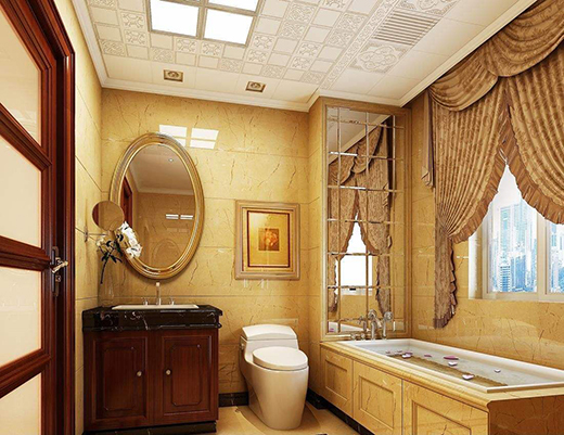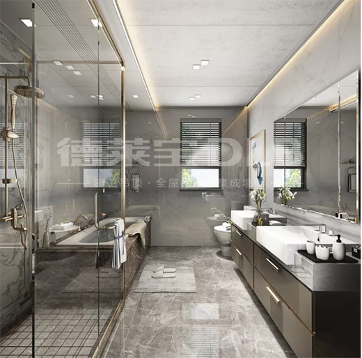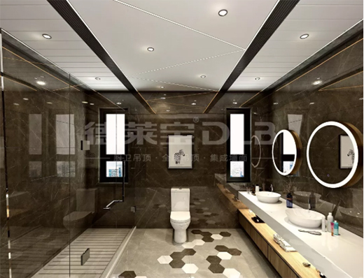 大板吊頂化繁為簡,不攀附華麗的裝飾來表現(xiàn)品位。黑白灰經(jīng)典的色搭,干凈大氣;邊板的設(shè)計(jì),結(jié)合簡柔的線形燈點(diǎn)綴,賦予衛(wèi)生間飽滿的時(shí)尚氣質(zhì)。