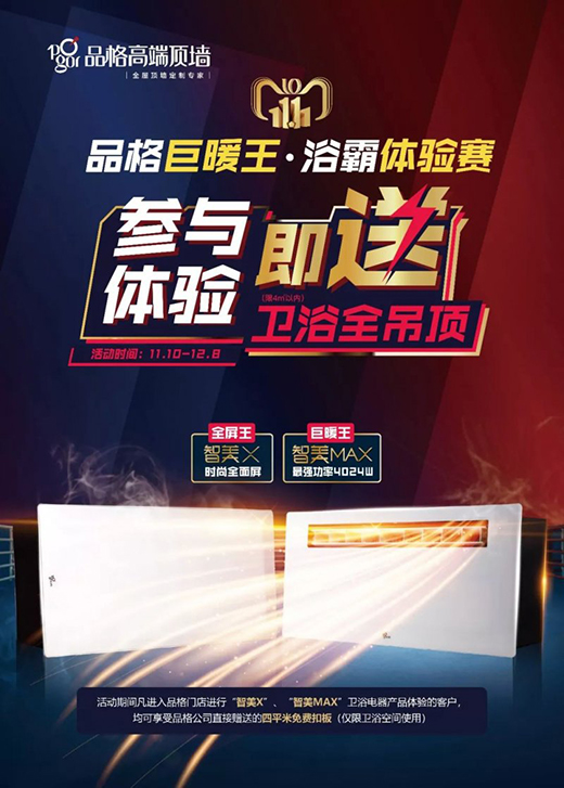 不僅如此,進(jìn)店體驗(yàn)指定產(chǎn)品,就免費(fèi)送您4㎡扣板(僅限衛(wèi)浴空間使用)。無(wú)論你是否挑戰(zhàn)成功,只要體驗(yàn)一下,就得免費(fèi)衛(wèi)浴吊頂。