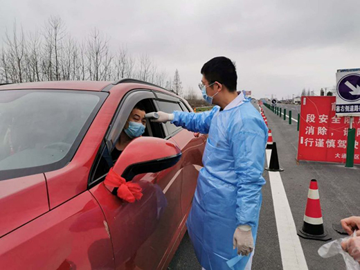 攔停車輛、監(jiān)測體溫、疫情排查、進出登記、宣傳講解,工作步驟緊張有序,一氣呵成。經(jīng)過幾天的工作,王晟已然成為了執(zhí)勤能手。自2月14日起,他每天執(zhí)勤9小時、測量體溫千余人次。