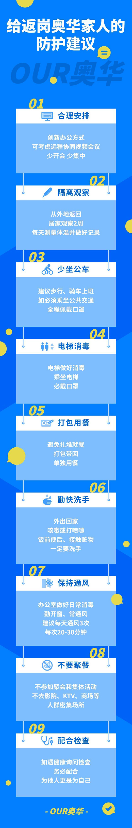 為保障員工的生命健康與安全,努力做到讓員工安心,讓客戶放心,奧華已采取一系列防護(hù)措施: