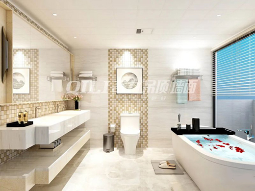 時尚的浴室內(nèi),沒有一絲倦怠之意,既有夏天的清爽,又能實現(xiàn)冬天的溫暖沐浴,頂部電器的加入,為浴室?guī)沓咂焚|(zhì)的享受。