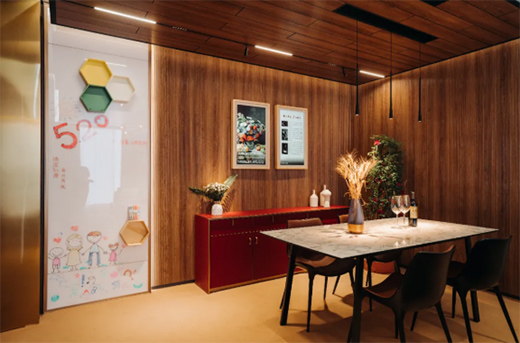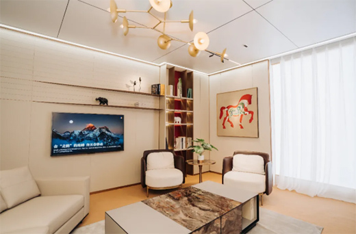 友邦方長系列將燈在客廳空間中的應(yīng)用發(fā)揮到了極致,通過燈的會(huì)客模式、影音模式、就餐模式,將燈的設(shè)計(jì)與空間完美融合。