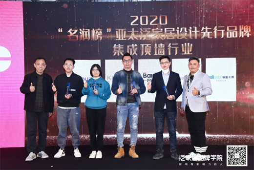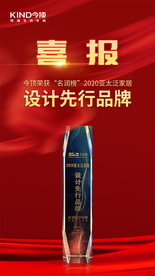 頒獎(jiǎng)典禮上,匯聚各行業(yè)的技術(shù)精英和品牌玩家,KIND今頂作為集成頂墻行業(yè)的高端品牌,注重產(chǎn)品設(shè)計(jì)和創(chuàng)新研發(fā),讓每個(gè)家庭在居家生活中,都能夠享受更具有時(shí)代特征的生活美學(xué)。歷經(jīng)一個(gè)月的激烈角逐,最終今頂一舉榮獲“名潤榜“2020亞太泛家居設(shè)計(jì)先行品牌。