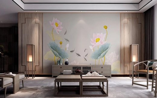 蓮花作為十大名花之一,冰清玉潔的品質(zhì)自古便深受文人墨客的喜愛,也是中式風格中的經(jīng)典元素之一。嬌艷的蓮花與錦鯉,在中華傳統(tǒng)文化中亦代表著富貴、吉祥,寓意著家庭幸福美滿、繁榮昌盛。