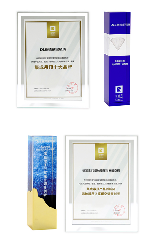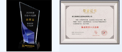 12月17日 “金瑞獎(jiǎng)”頒獎(jiǎng)盛典,德萊寶一舉包攬“2020年度集成吊頂十大品牌、2020年度集成吊頂產(chǎn)品創(chuàng)新獎(jiǎng)”兩大重量級(jí)獎(jiǎng)項(xiàng)。
