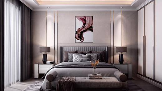 柔和的細(xì)膩質(zhì)感渲染著這個(gè)臥室的低調(diào)奢華