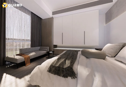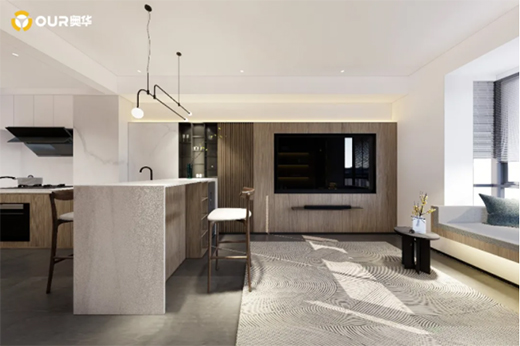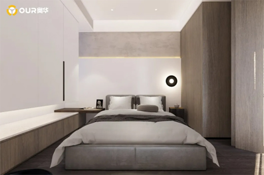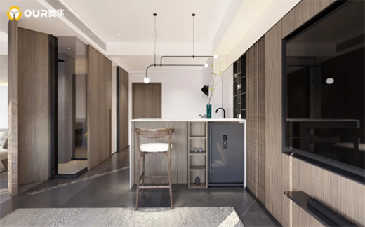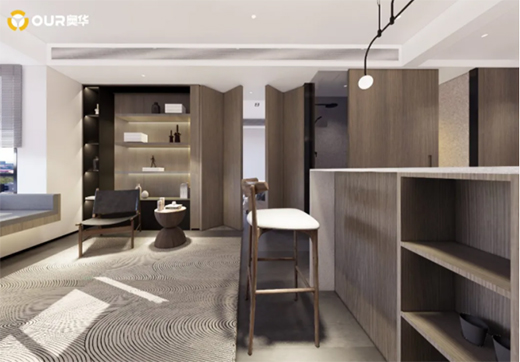 縱觀全局,奧華墻品溫潤(rùn)的木色,令整體空間簡(jiǎn)約清爽,增添通透和舒適感。