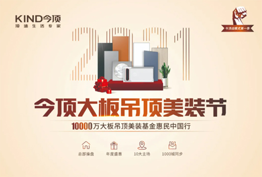 為了回饋全國消費者,今頂公司總部攜手全國1000家門店,派發(fā)億元大板消費基金,讓優(yōu)質的今頂大板吊頂普惠更多家庭!