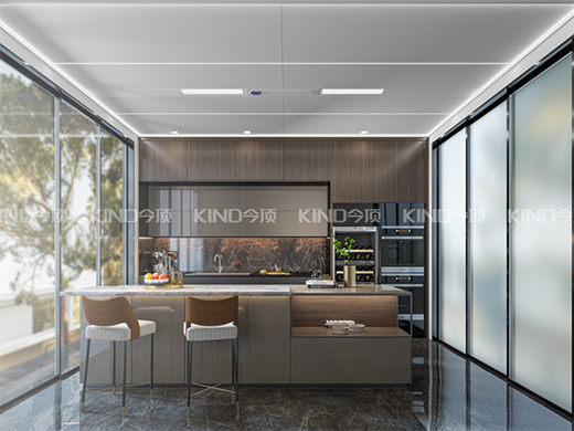 其采用天然材質(zhì),天然植物秸稈、原木纖維、鈣鹽為主要成分,環(huán)保無(wú)醛。并搭載今頂自主研發(fā)的Klive美學(xué)燈光線條系統(tǒng),并采用干式快裝的方式,不僅能打造更溫馨的氛圍,并且裝修效率更高,安裝完無(wú)需散味,即刻入住。