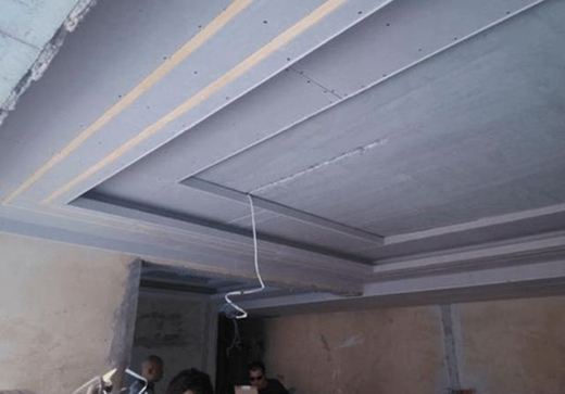 從鄰居家看到,所謂的將金屬線條嵌進(jìn)去,就是先在原吊頂上開出一個(gè)暗槽。當(dāng)然,這個(gè)處理也是比較麻煩的。因?yàn)楝F(xiàn)在的吊頂,基本上都是直接將石膏板安裝在龍骨架上的,而若想將裝飾線條嵌進(jìn)去的話,那么在安裝石膏板之前,還得先安裝一塊木板,最后再給石膏板做抽槽處理。否則,當(dāng)石膏板抽出溝槽之后,立馬就破了。