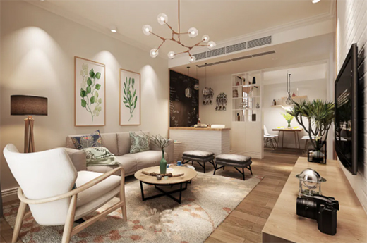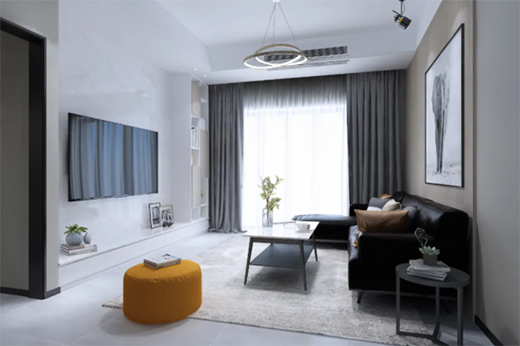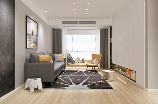 客廳作為接待客人的場所,美觀性和舒適性也很重要,一般推薦使用暗裝風(fēng)管機(jī),采用側(cè)送下回的送風(fēng)方式。