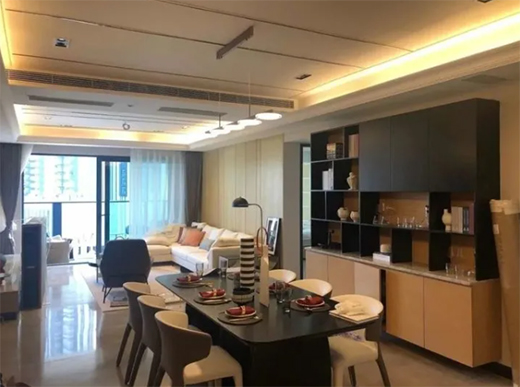 相比分體式空調(diào),中央空調(diào)控溫更加精確、能耗表現(xiàn)更好,且隱藏式安裝的特點(diǎn)也跟符合現(xiàn)代家居的審美標(biāo)準(zhǔn),目前家用中央空調(diào)產(chǎn)品已可以匹配大部分戶型需求,未來,伴隨著人們生活水平的提高以及對居家舒適度的重視, 越來越多的家庭也將更傾向于選擇中央空調(diào)。而中央控空調(diào)的內(nèi)機(jī)需要與吊頂結(jié)合隱藏,所以如何巧妙地設(shè)計客餐廳的吊頂,讓內(nèi)機(jī)與天花造型融為一體就顯得格外的重要了。
