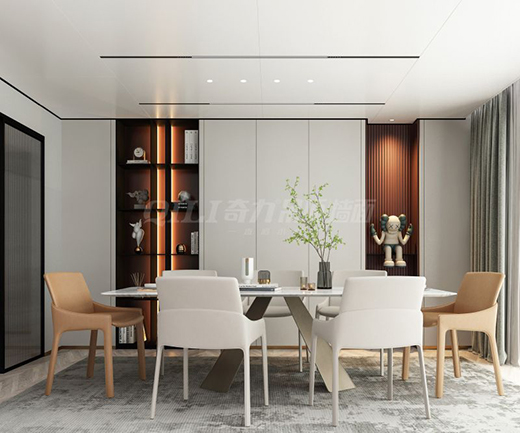 奇力「天幕」吊頂突破集成吊頂小模塊配置,將成型大板+鋁蜂窩芯相結合,讓吊頂裝修變成一件省時省力又省心的事。