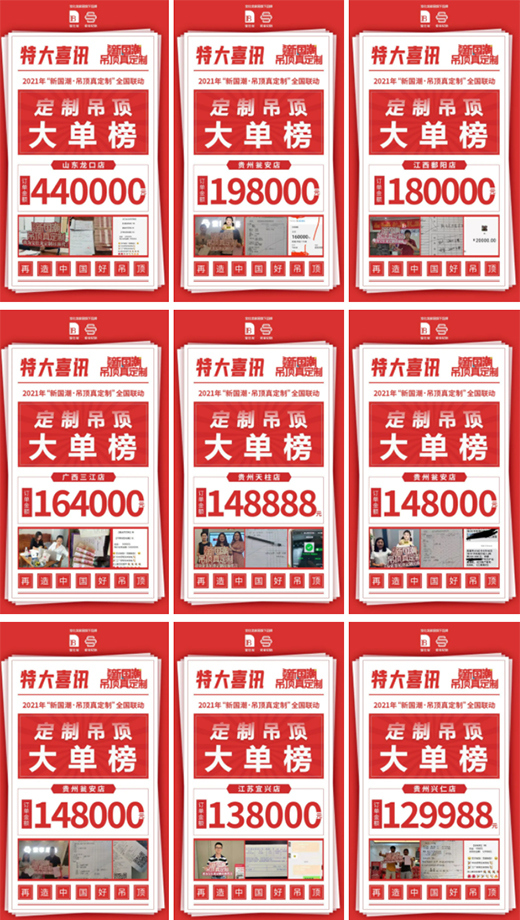 活動TOP流量戰(zhàn)報產(chǎn)品是核心,定制是未來,大單是常態(tài)。此次活動期間收獲了眾多萬元定制大單以及數(shù)臺線性電器喜報,更驗證了定制吊頂?shù)镊攘εc市場潛能。