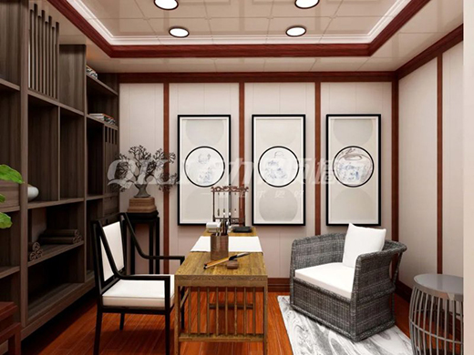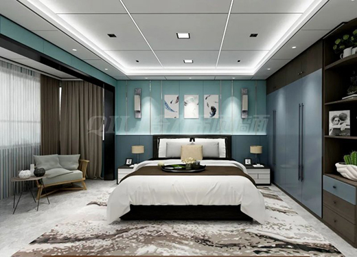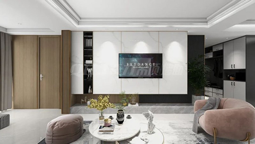同時為避免素色的單調(diào),通過線條拼接與頂墻細(xì)節(jié)處理平衡視覺。局部上,通過與軟裝、裝飾物、燈光的搭配,營造出頂墻設(shè)計的無限可能性。